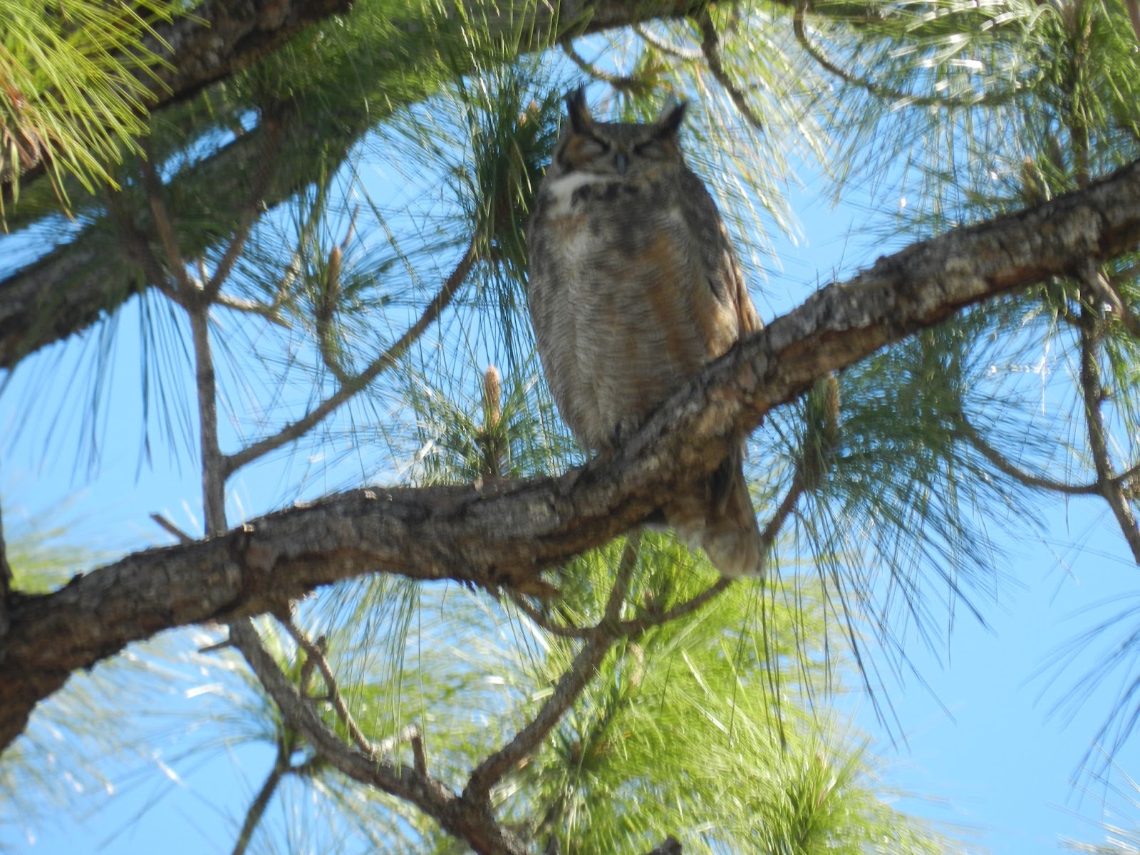 I would bet on the eagle maintaining ownership but we will see during the next few days. The owl is a fierce bird and will try to intimidate the eagle but the huge eagle will win out in the end . I wish to see the owl find suitable accommodation in the near area so we will have the benefit of watching her raise her chicks in harmony with the neighborhood.